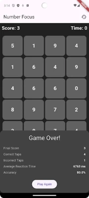 A free and offline brain game sharpens attention, reaction speed, and mental agility through rapid identification. Engage in 60-second challenges where you tap the target in a dynamically updating 5x5 grid, with numbers refreshing every 1.5 seconds.