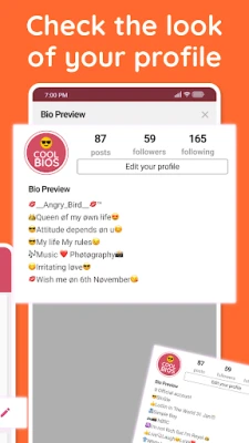 ✅ Profile Preview: This feature allows you to check how Bio suits your profile. Enter your profile ID, and our app will fetch it and show you a preview. Amazing, isn't it?