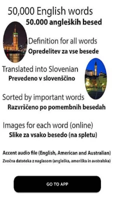 50,000 English words is a special Dictionary with pictures, definition for each word and with American , Australian , British pronunciation