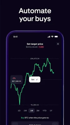 • Buy crypto in fixed amounts over time to benefit from dollar-cost averaging (DCA)