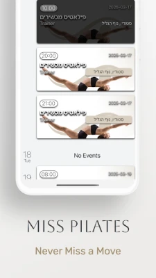 Miss Pilates App is a user-friendly platform designed to streamline the experience for both clients and studio managers. With just a few taps, users can easily browse and enroll in upcoming Pilates events, classes, or workshops, ensuring they never miss a session. For studio managers, the app simplifies administrative tasks like scheduling, attendance tracking, and communication, making it effortless to manage the studio efficiently. Its intuitive interface and seamless functionality create a hassle-free experience for everyone involved, fostering a well-organized and engaging Pilates community.