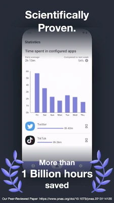 This effect has been confirmed in a study with the University of Heidelberg and Max Planck Institute where we detected a reduction of social media usage by 57% thanks to one sec. Read our peer-reviewed paper: https://www.pnas.org/doi/10.1073/pnas.2213114120