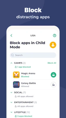 ✔ Custom modes - block apps of choice at different times to encourage appropriate behaviour, e.g. allow educational apps during homework but games only during free time