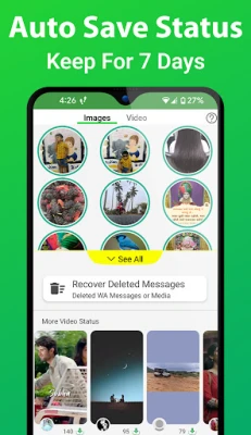 Status Download - Saver app let you download photo images, GIF, Video of new status feature of 2 new app WA 2025 Story. Status downloader allows to share right from app to your friends story saver and WA status editors